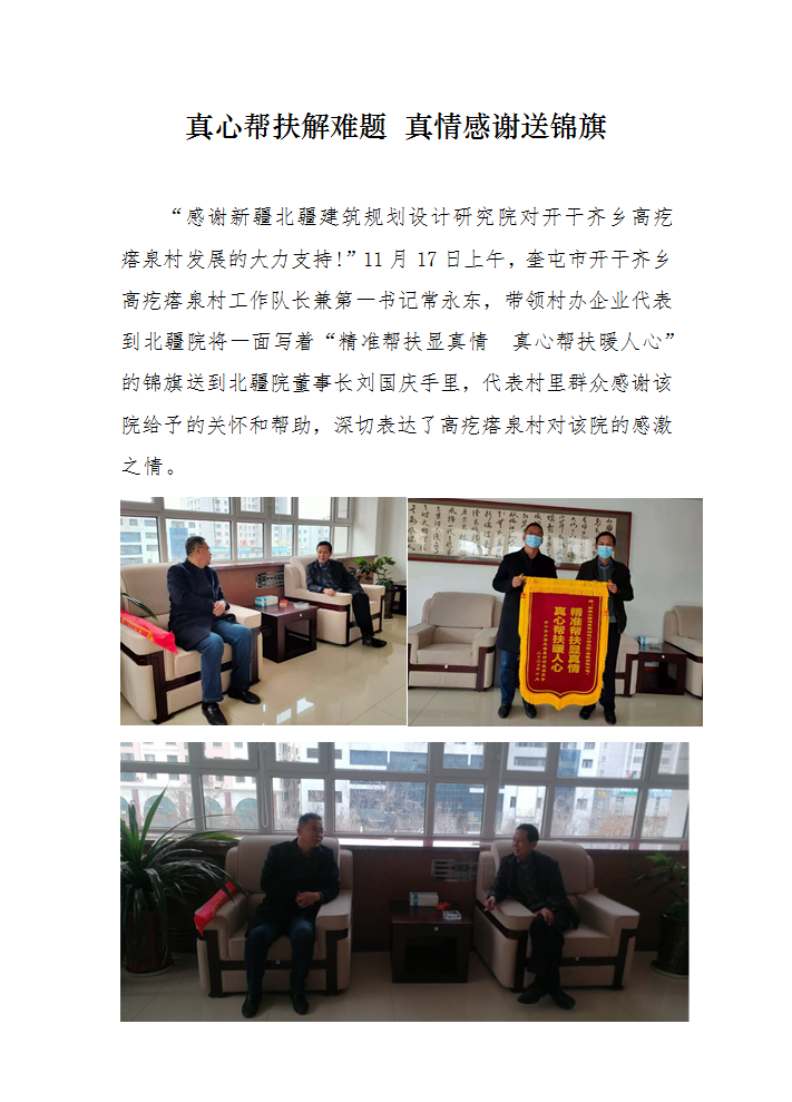 真心幫扶解難題 真情感謝送錦旗------新疆北疆建筑規(guī)劃設計研究院(有限責任公司)幫扶奎屯市開干齊鄉(xiāng)紀實