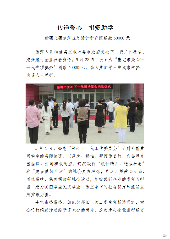 傳遞愛(ài)心 捐資助學(xué) ——新疆北疆建筑規(guī)劃設(shè)計(jì)研究院捐款50000元