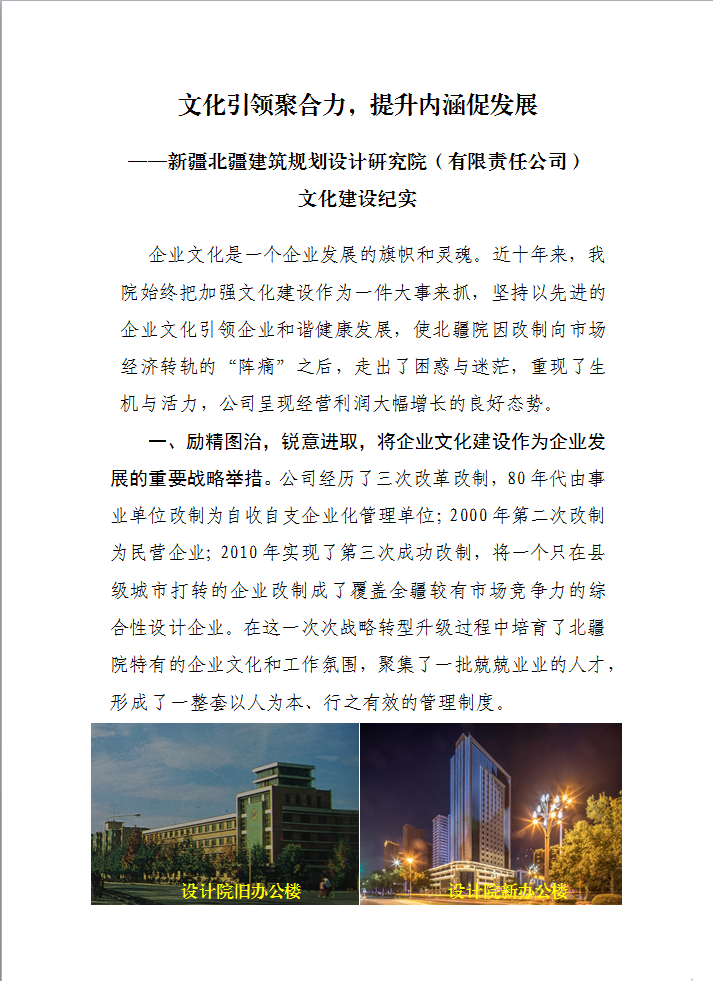 文化引領(lǐng)聚合力,提升內(nèi)涵促發(fā)展 ——新疆北疆建筑規(guī)劃設(shè)計(jì)研究院(有限責(zé)任公司) 文化建設(shè)紀(jì)實(shí)